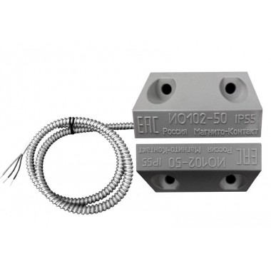 Магнитоконтактный для металлических поверхностей; контакты переключаются при тревоге, 14 мм (контакты замкнуты), 40 мм (контакты разомкнуты); U-коммут.36 В, I-коммут.100 мА, P-коммут.7.5 Вт; IP55, t-раб.-50…+50°С, 50х29х30 мм (геркон) 50х29х30 мм (магнит). Кабель в металлорукаве из оцинкованной стали 600 мм. Пластиковый корпус. 0.155 кг.
